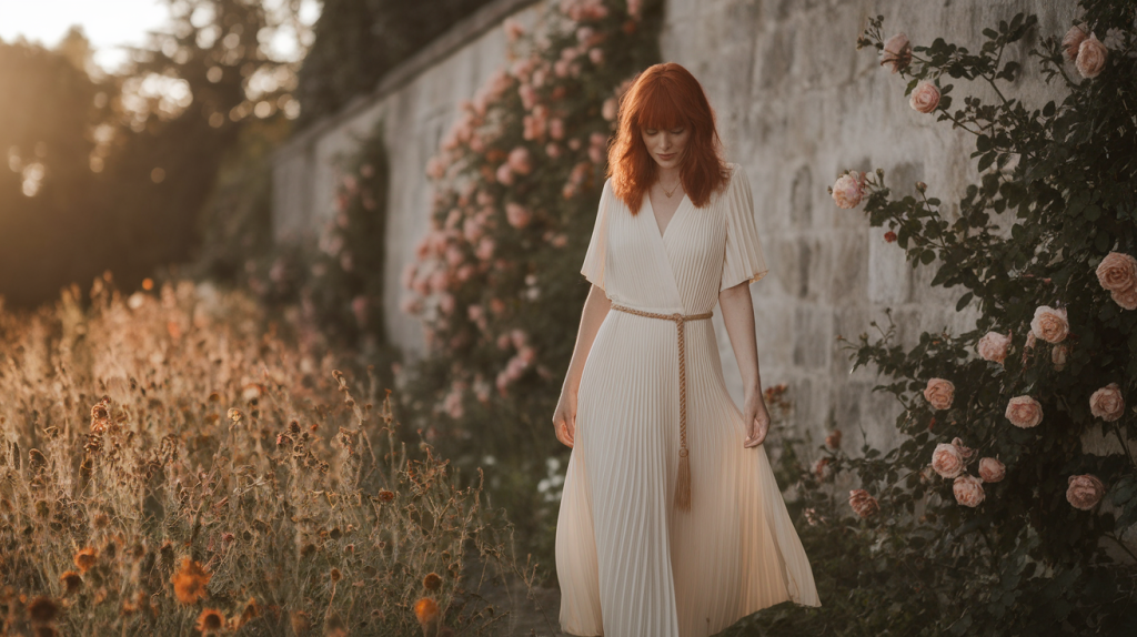 That said, don’t shy away from strategic color pops. Emerald green, coral, and rich gold accents add visual interest and photograph beautifully. The trick is using these as accent colors—a coral clutch with a neutral outfit, or emerald earrings with an all-white ensemble—rather than head-to-toe bright colors that intensify the heat.