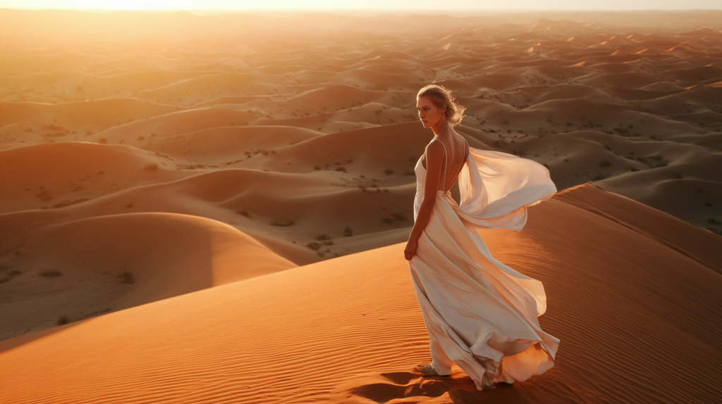 Fabric choices that flow beautifully in desert winds include lightweight linen, cotton gauze, chiffon, and silk blends. These materials catch the breeze and create that coveted movement in photographs. Avoid heavy fabrics that hang limply or clingy materials that won’t photograph well.