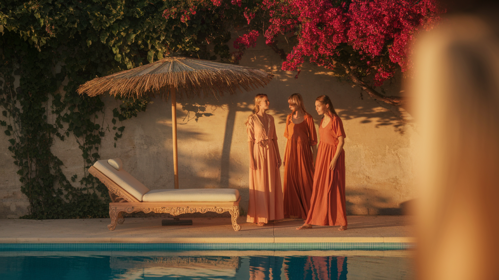 Fabrics that work in humid pool areas include quick-drying linen, lightweight cotton, and breathable synthetics designed for resort wear. Avoid heavy fabrics that become uncomfortable when damp or materials that show water marks prominently. Your poolside outfits should handle occasional splashes gracefully.