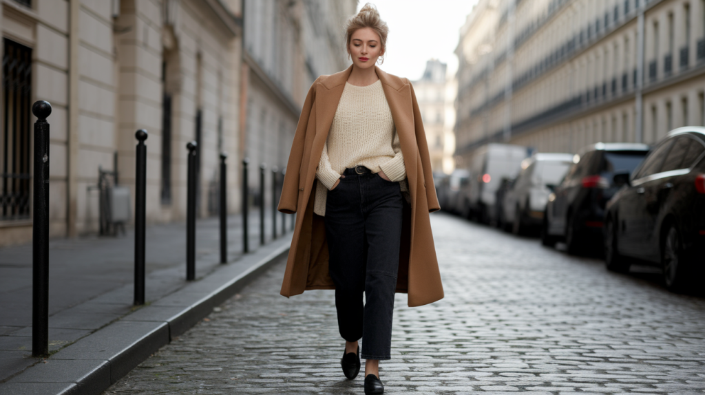 Parisian style works for every body because it’s about proportion and fit, not trends. For petite frames, choose cropped or ankle-length trousers to avoid overwhelming your height. Monochromatic outfits create vertical lines that elongate. Avoid oversized pieces that swallow your frame—opt for fitted or slightly relaxed silhouettes instead.